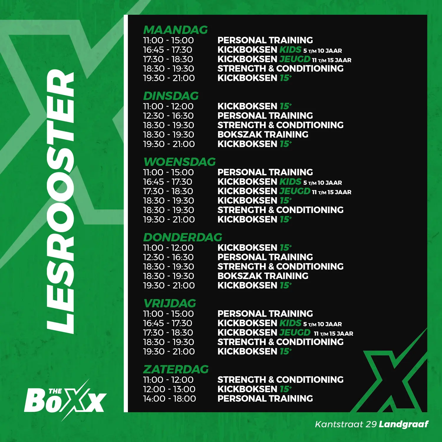 Dit is ons meest recente lesrooster. Deze kan naar verloop van tijd aangepast worden.